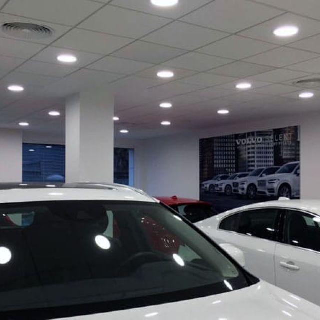 Desde la sede central de la marca de Volvo exigieron al concesionario unos altos requisitos de luminancia, temperatura de color y reproducción cromática que se cumplían perfectamente con las luminarias Celer. Se instalaron aparatos empotrados en falso techo de pladur y empotrados orientables para acentuar cada vehículo. En oficinas se situaron paneles UGR<19 de conformidad con la normativa de iluminación.